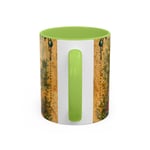 Warmth in your hands and a little story in every sip. This ceramic mug pairs a glossy, color-contrasting interior and handle with a whimsical woodland meadow illustration: a tiny, cheerful field mouse names FLORIBEL© dressed in folk-style garb among dandelions, mushrooms, and fluttering dragonflies. It feels like a quiet morning in a sunlit meadow — gentle, curious, and slightly magical. Floribel's guiding motto is: